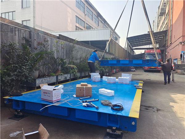 健身器材工廠為方便過進(jìn)出貨物過磅,省去跟車去外面過磅的時(shí)間和功夫,選擇自己安裝一臺(tái)廠區(qū)內(nèi)自備用磅。